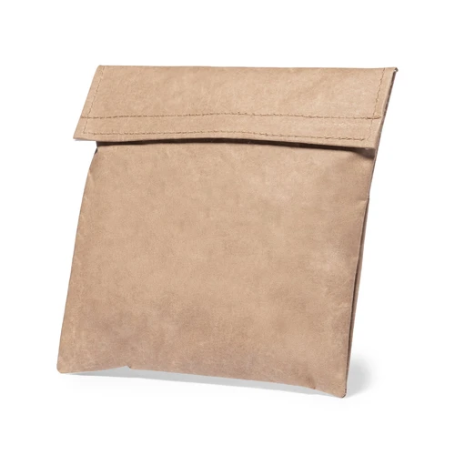 Portasnacks térmico de línea nature. Exterior fabricado en resistente papel reciclado laminado, e interior isotermo en PEVA. Con cierre de velcro.