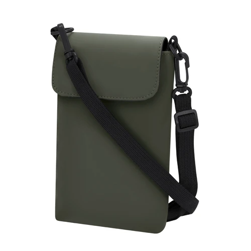 Portatodo fabricado en suave PU. Compartimento principal con cierre de solapa con cierre en velcro. Incluye cinta ajustable plana con doble enganche de mosquetón giratorios.