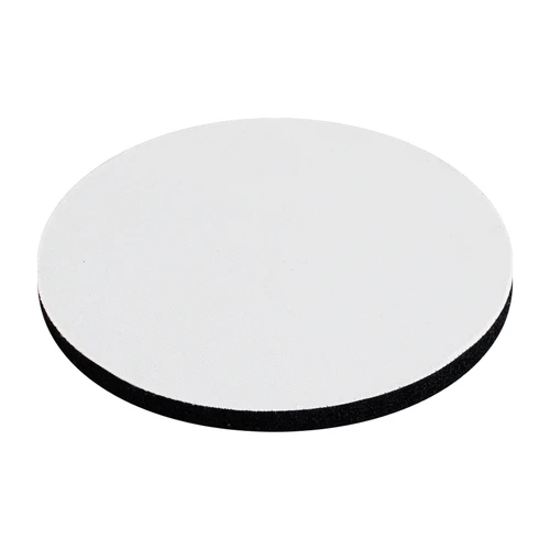 Posavaso redondo de 5mm de espesor y 9cm. de diámetro, con base de silicona negra y cubierta de tela blanca para Sublimación.