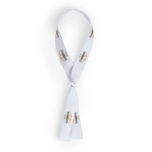 Pulsera ajustable en suave poliéster y amplia gama de colores. Con accesorio de ajuste en color plateado brillante.