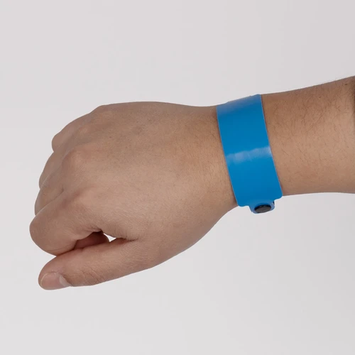 Pulsera plástica PVC con cierre de seguridad.