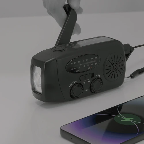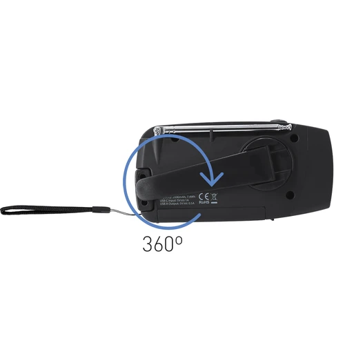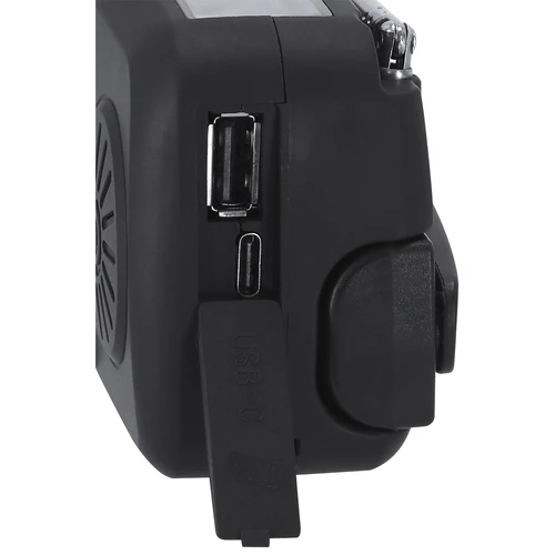 Radio Multifunción de Emergencia fabricada en resistente ABS. Ofrece una amplia gama de funciones útiles para el uso diario, actividades al aire libre o situaciones de emergencia. Incluye: - Radio de banda dual: FM / AM - Linterna LED, con modo SOS - Panel de Carga Solar - Carga Manual con sistema dinamo ajustable de 360° - Batería recargable de 2000 mAh - Antena plegable de alta sensibilidad - Entrada Tipo C y salida USB Una solución funcional para mantenerse siempre conectado y preparado.