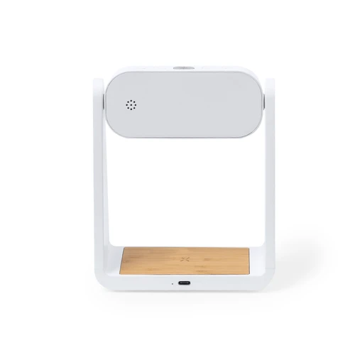 Reloj multifunción con pantalla retroiluminada, función lámpara y cargador inalámbrico 10W integrado. Fabricado en resistente ABS y bambú, de elegante diseño en color blanco, con funciones hora (12/24h) y alarma (3) . Pantalla con intensidad regulable, compatible con dispositivos equipados con tecnología de carga inalámbrica Qi y lámpara con 6 LEDs. Presentado en caja individual de diseño kraft y protector de papel, con manual de instrucciones en español en inglés.Elaborado con elementos vegetales para así fomentar la utilización de materias primas naturales y reducir las emisiones contaminantes.