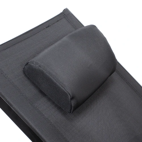Reposera mecedora negra con apoya-brazos, modelo "Ventus". Estructura de Aluminio color negro, asiento de Textilene negro. Descanso y relajo verdaderos.
