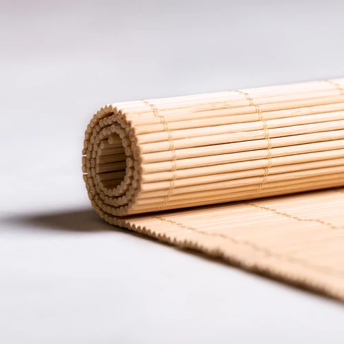 Salvamantel plegable de diseño rectangular en madera de bambú de variados colores. Con refuerzos en resistente hilo.