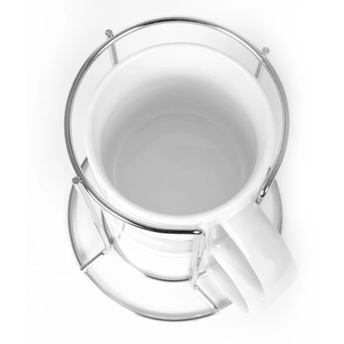 Set de 2 tazones cerámicos para Sublimación, en contenedor de Acero Inoxidable. Calidad superior "ORCA". Capacidad de cada Tazón: 250cc. Presentación en bolsa PP translúcido + estuche de cartón blanco.