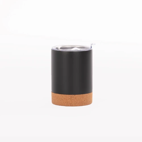 Set de Termo 1/2 litro con tapa twist-off con asa + Mug 200 cc con tapa removible de plástico PS Crystal Clear con sello cilíndrico de silicona, ambos en Acero Inoxidable color negro, con base aislante de corcho, para una mejor adhesión a la superficie. Producto BPA FREE, para el contacto con líquidos y alimentos. Presentación en elegante caja de carton color negro con tapa, interior cuna de EVA aterciopelada negra. Sobre funda de papel negro.
