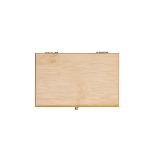 Set de vinos en estuche de bamboo. Contiene sacacorchos dos tiempos con navaja y destapador corona, tapón y collar cortagota. Medidas de la caja: 16 x 10 x 5 cm. La Baule.