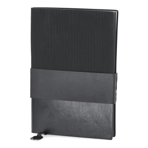 Elegante set premium. Incluye: - Vaso térmico fabricado en acero inoxidable de doble pared con capacidad de 470 ml. Con un dosificador en tapadera, libre de BPA, sistema de apertura abre fácil, banda de silicona a juego y base antideslizante. - Bloc de notas con tapas blandas fabricado en elegante PU color negro. Su diseño combina texturas lisas y biseladas. Incluye marcapáginas de tela con accesorio metálico especial para marcaje en láser. Interior con 100 hojas en color crema, de disposición a una raya y bordes en negro. - Roller de acabado negro mate con detalles metálicos en color plata. De cuerpo biselado, con cierre de capucha, clip y tinta azul. Cuenta con cómodo agarre en metal pulido.Presentado en sosfisticado estuche individual de acabado mate, con interior troquelado para cada uno de los elementos del set.