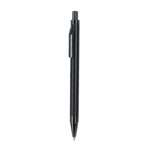 Elegante set premium que incluye:Bolígrafo en Aluminio Reciclado de acabado negro mate, de mecanismo pulsador y tinta azul. Con clip y puntera en pulido ABS. Incluye distintivo Aluminio reciclado.Elegante llavero con cinta fabricada en poliéster PU y accesorios cromados.
