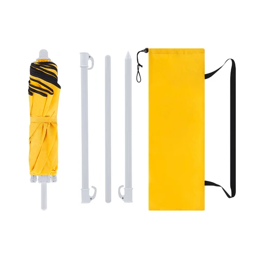 Sombrilla de playa plegable de 8 paneles su diseño compacto en cuatro secciones facilita el montaje. Confeccionada en resistente nylon con interior en color gris plateado y protección UV, con un diámetro de 160 cm, altura ajustable y tubos metalizados en color blanco. Las varillas están fabricadas en fibra de vidrio para mayor resistencia y resistente al viento. Se presenta en una práctica funda transparente a juego con la sombrilla, con cierre de cuerda y cinta para transporte.
