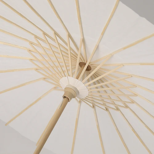 Original sombrilla de madera y tela en papel. Con mango en madera natural en acabado brillante. Sistema de apertura y cierre manual, con diámetro de 58 cm las varillas están fabricadas en madera. Ideal para eventos al aire libre.Elaborado con elementos vegetales para así fomentar la utilización de materias primas naturales y reducir las emisiones contaminantes.