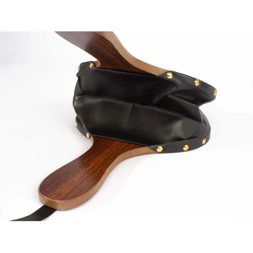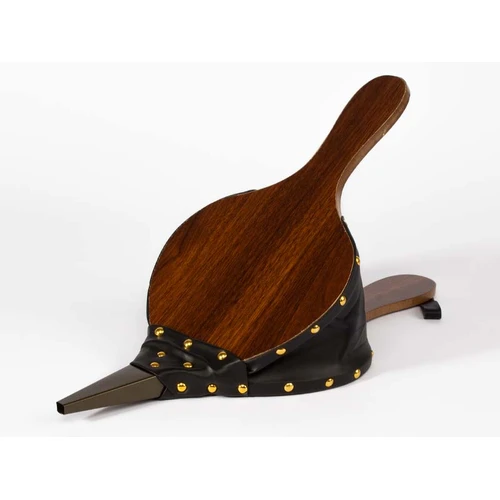 Soplador grande de aire tipo Acordeón, para chimeneas y parrillas. Superficie MDF, reforzado con cuero y tachas. Toma de aire posterior. Amplia superficie para logo.