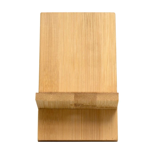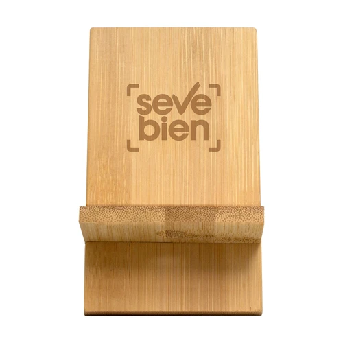 14 x 8 x 0.8 cm. Bambú. Soporte de escritorio para celular. Cuenta con orificio que permite el paso del cable para facilitar la carga del dispositivo. Práctico y transportable. Presentación en caja de regalo Kraft.