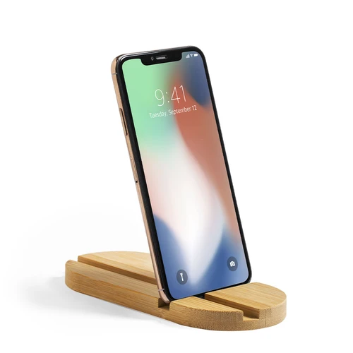 Original y sencillo soporte de línea nature para smartphone y tablet. Fabricado en bambú procedente de cortes naturales. Presentado en atractiva caja individual de diseño eco.