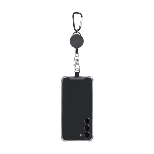 Soporte extensible de 60 cm para smartphone. Accesorio de transporte para situar entre la funda y el smartphone y mosquetón giratorio metálico. Incluye un mosquetón en el extremo para colgar y poder transportar con facilidad.