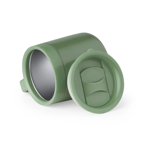 Taza térmica de sobremesa fabricada en acero inox de doble pared con aislamiento y 330 ml de capacidad. Incluye tapa a presión con dosificador abrefácil y base antideslizante. Disponible en variada gama de colores mate. Presentada en atractiva caja de diseño kraft.