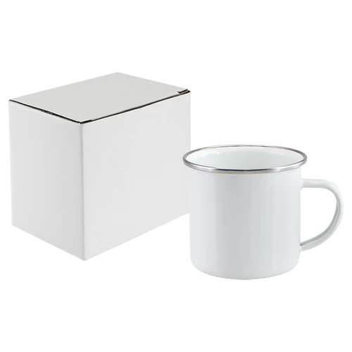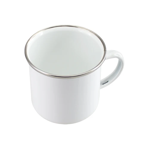 Tazón de acero enlozado "Enamel" de 350cc. con cobertura para Sublimación. Único con borde de Acero Inoxidable, que entrega higiene y protección al contacto con tu boca.