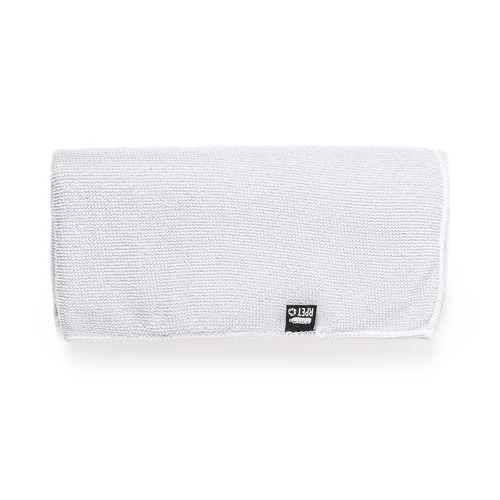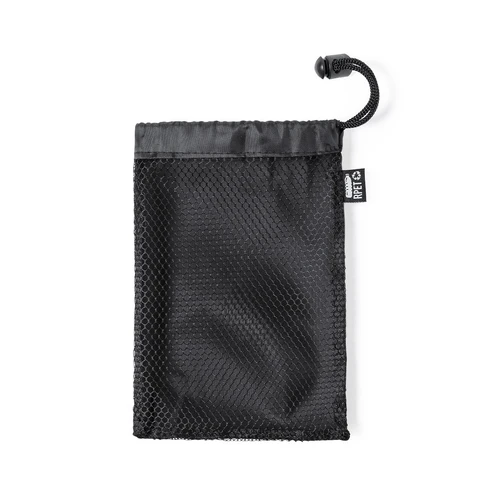 Toalla absorbente de línea nature. Fabricada en RPET de 160g/m2, elaborado a partir de plástico reciclado para así fomentar la reutilización de residuos plásticos y contribuir a la sostenibilidad del planeta. Tamaño 50x100 cm, presentada en funda individual de redecilla RPET con parte trasera lisa y disponible en variada gama de colores. Con distintivo RPET en etiqueta.