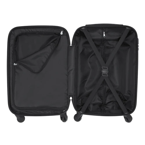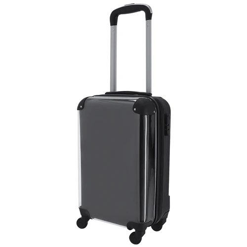 Trolley ideal para personalización con diseño propio. Cuenta con protector frontal transparente en PC, que permite insertar fácilmente el diseño deseado, ofreciendo además una máxima visibilidad. Parte trasera en resistente ABS color negro, aportando resistencia y durabilidad. Cuenta con cierre lateral de seguridad por combinación y doble tirador en cremalleras. En su interior, cuenta con compartimento con cremallera y cintas de ajuste. Con asa telescópica y 4 ruedas giratorias.