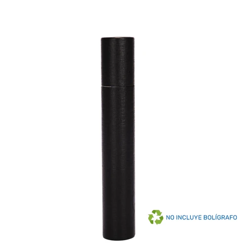 Estuche tubular Porta-Lápiz o Bolígrafo modelo "GEMINIS", con tapa. Fabricado en cartón forrado color negro (base blanca).