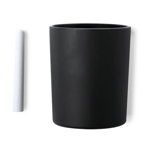 Vela aromática de fragancia vainilla presentada en original tarro pizarra para decorar. Tiza incluida y presentada en caja individual eco.