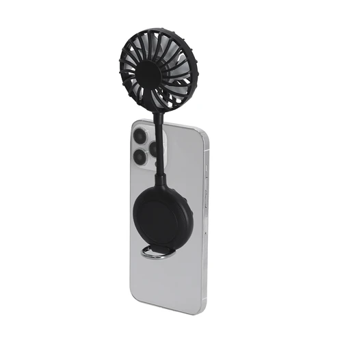 Ventilador multiposición con giro de 360°, fabricado en ABS de color sólido y equipado con ventosa para sujeción del móvil. Incluye soporte ajustable para dispositivo . En su extremo inferior incorpora un mosquetón con anilla metálica. 3 velocidades con ajuste mediante botón, e incluye cable de carga USB A a USB C en el mismo color con batería 300 mAh. Su diseño permite ajustarlo libremente según sus necesidades y adaptarlo a diversas situaciones, proporcionando una agradable sensación de frescura en todo momento
